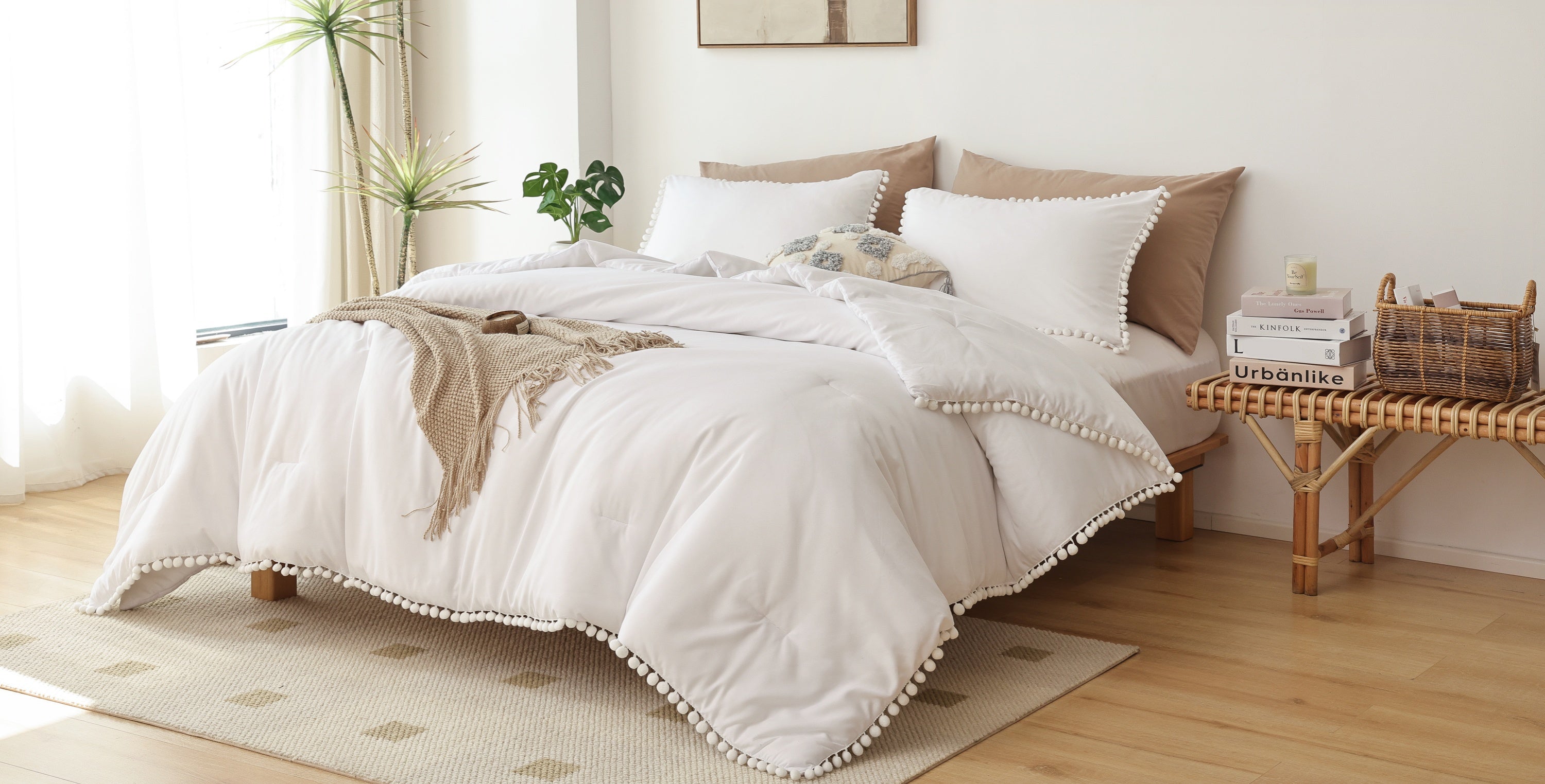 SPRINDAY 3 Piece Ball Pom Fringe Design Comforter Set For All Seasons - Full, Terracotta Red